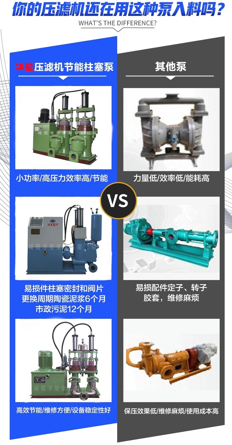 高壓柱塞泥漿泵排出壓力不能由泵本身限定,而取決于泵裝置管道特性,且與流量無關(guān)。因此,若認(rèn)為輸送液體是不可壓縮的,即,在理論上可認(rèn)為往復(fù)泵的排出壓力將不受任何限制,即可根據(jù)泵裝置的管道特性,建立泵的任何所需的排出壓力。所有往復(fù)泵都有一個(gè)泵的排出壓力的規(guī)定,不是說該泵的排出壓力不會(huì)再升高,只是說,由于原動(dòng)機(jī)額定功率和泵本身的結(jié)構(gòu)強(qiáng)度的限制,不允許在超出這一排出壓力下使用罷了。
